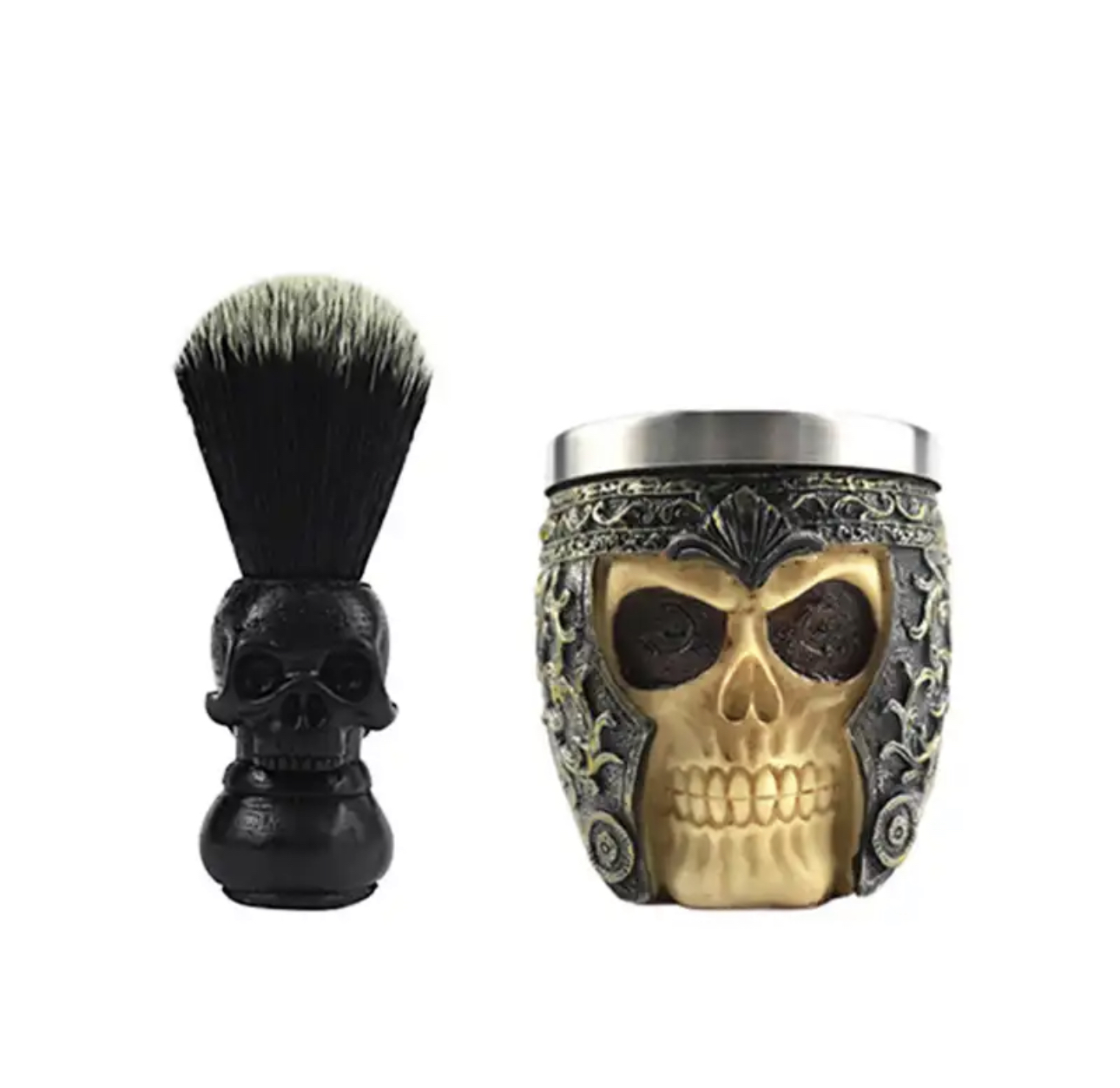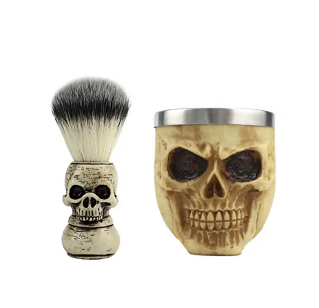 1. 100% pure badger hair shaving brush: The bristles of the shaving brush are made of pure badger hair, which softens and lifts the beard, while gently removing the skin before shaving. 2. Stainless steel shaving soap bowl: The shaving bowl is made of high-quality stainless steel, which is not easy to rust, and it is not easy to break when dropped. 3. [Easy to use] This razor set has a handle to ensure easy grip and keep your hands clean. With this shaving kit, you can quickly put your shaving tools on the bathroom vanity 4. Skull shaving brush handle: This shaving cream brush and bow are made in the shape of a skull, which is very attractive to every gentleman. Lightweight and portable, suitable for family and travel use. 5. Suitable for all types of beards, such as beards, goatees, cat whiskers and other delicate beards. It is a perfect gift and facial cleaning tool for men on Valentine's Day, Father's Day, birthday or other holidays.