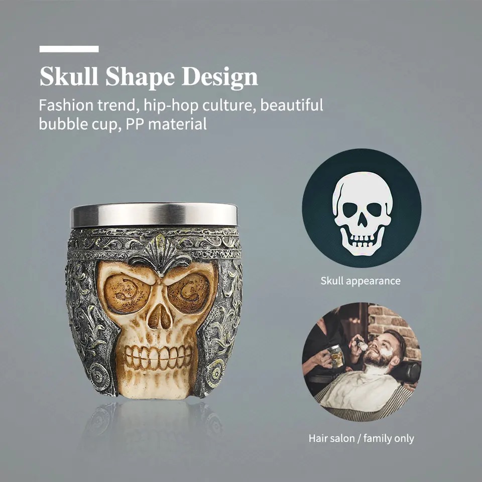 Color: As the picture shows Size (beard brush): Approx. 10.8*3.5cm Size (soap bowl): Approx. 7.5*7cm Material (beard brush): Badger hair Material (soap bowl): Stainless steel liner Quantity: 1 Piece Item Name: Beard brush, Shaving soap bowl Features: 1. Skull design, firm and suitable, beautiful appearance. 2. The beard brush is made of high-quality badger hair, soft and skin-friendly, and highly absorbent. 3. The soap bowl is made of high-quality stainless steel liner, very durable.