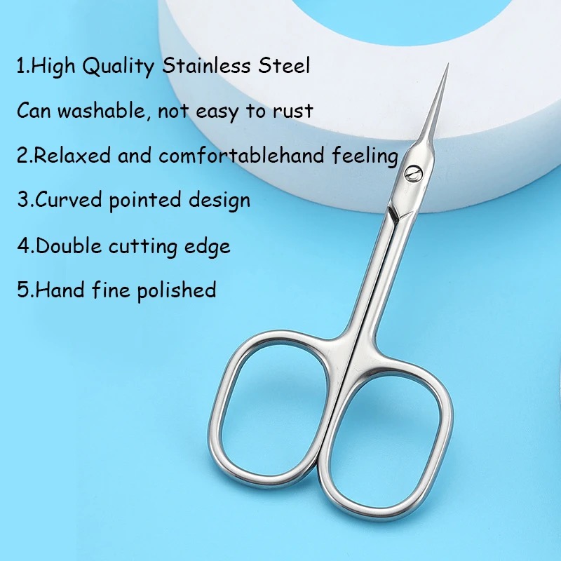 Cuticle Nippers Scissors Nail Clipper Trimmer Dead Skin Remover Cuticle Cutter Russian Nail Scissors Manicure Curved Tip Scissor Specifications: Material: Stainless steel Size: 9.8*4.4cm Descriptions: 1. New high-quality and safe stainless steel scissors, nose hair trimmer, eyebrow scissors. 2. It has a sharp precision blade that can be bent, and the tip of the blade is round to ensure safety. 3. Designed for safe and painless trimming of nose and eyebrows. 4. The rounded curved edge ensures that you will not cut the delicate ear and nose area. 5. Simple and practical design, easy to hold and use. Package Included: 1 Pack Cuticle Nippers Scissors