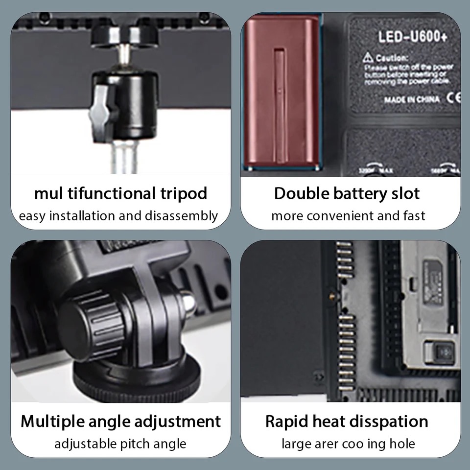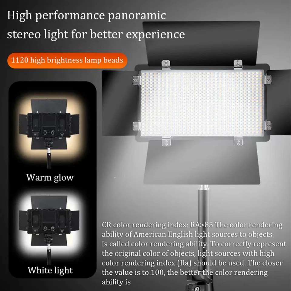 Features: bi-color light 1.With Its Lightweight And Durable Construction, You Can Carry This Light Around With You Wherever You Go. 2.Features With 2 Separate Knobs On The Panel Back For Adjusting Color Temperature And Brightness. 3.White Filter Can Make Soften The Light Source And Enhance Skin Tone In Portraits Photography. 4. Adiustable Mount Bracket Makes The Light Toward Different Angle For The Best Shooting.360° Horizontal Rotation, 180° Tilt Up And Down 5. 4 Leaf Barn Doors Can Provide Light Control. Keep Stray Light From Other Areas Of The Subject From Reflecting Into The Camera Lens And Causing Flare. 5.CRI 95+ Can Truly Restore The Color Of The Product Or Portrait