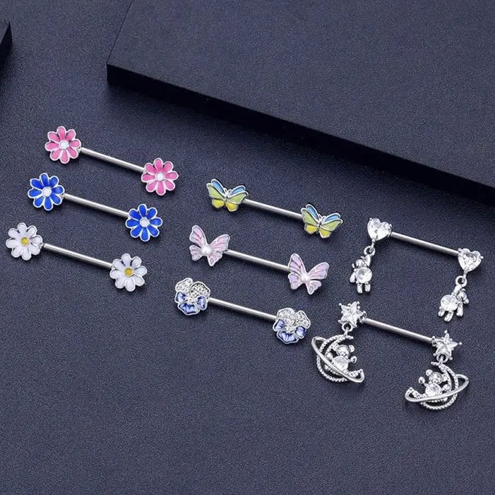 Tags: 2Pcs Love Heart Nipple Piercing Stainless Steel Nipple Ring Bar Breast Nail Body Piercing Jewelry Barbell Nipple Chain Rings