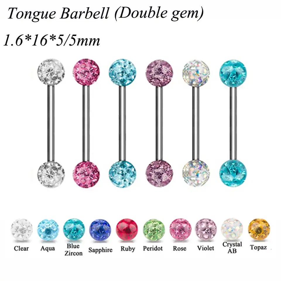 Fashion and unique design, great accessory and decoration for girls, women. - Can be used for tongue piercing - Perfect to wear for most occasions Specifications: Quantity:8PCS/Set Color :Multicolor Size: - Two Ball Diameter: Approx.6mm/0.24in - Barbell Thickness: Approx.1.6mm/0.06inch (14g) - Barbell Length: Approx.16mm/0.63inch (Approx.) Material:Acrylic Package Include:8PCS/Set Tongue rings