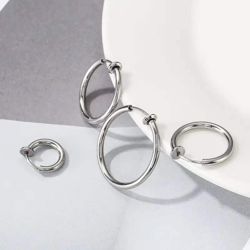 Tags: Punk Non-pierced Earrings Fake Piercing Ear Ring Hoop Rose Gold Silver Color Men And Women Round Copper Spring Ear Clips