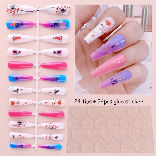 24pcs stick on ready to wear nails+ tab glue