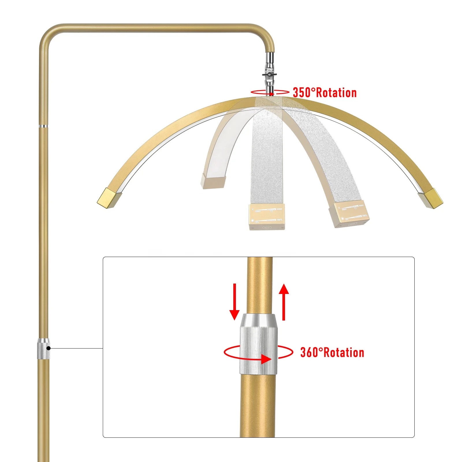 Product Description: [Half-moon Light) fosoto special half-moon shape design with floor stand, It will make your work without any shadow obstruction.with 320pcs high-quality lamp beads, 45W high power and 95+ high color rendering.suitable for lash, eyelash, tattoo, desktop vlog, beauty salon live streaming, beauty project, nail enhancement etc. (Bi-Color Temperature) 3200K-5600K adjustable color temperature, Adjusting brightness and color temperature with fingers, More advanced and aesthetically pleasing, which can meet your needs of light in different usage conditions. (CRI≥95) A color rendering index greater than or equal to 95 allows you to work clearer, Better than similar products on the market, with more realistic colors and high-quality videos and images, It can help your customers take care of their skin under bright lights without deciding to glare. [Stable base) A base of approximately 3.4kg makes the half-moon light more stable when rotated 360°, making it convenient for storage and working at different angles. [350° rotate lamp head) Special 350 ° lamp head rotation prevents the lamp head from falling off when the 360 ° rotation is excessive. 350 ° rotation effectively solves the problem of lamp head falling off (adjustable stand) The stand can be freely adjusted from 101cm/39.7inch to 171cm/67.3inch, with a convenient and flexible design to meet the needs of different heights in your daily work.