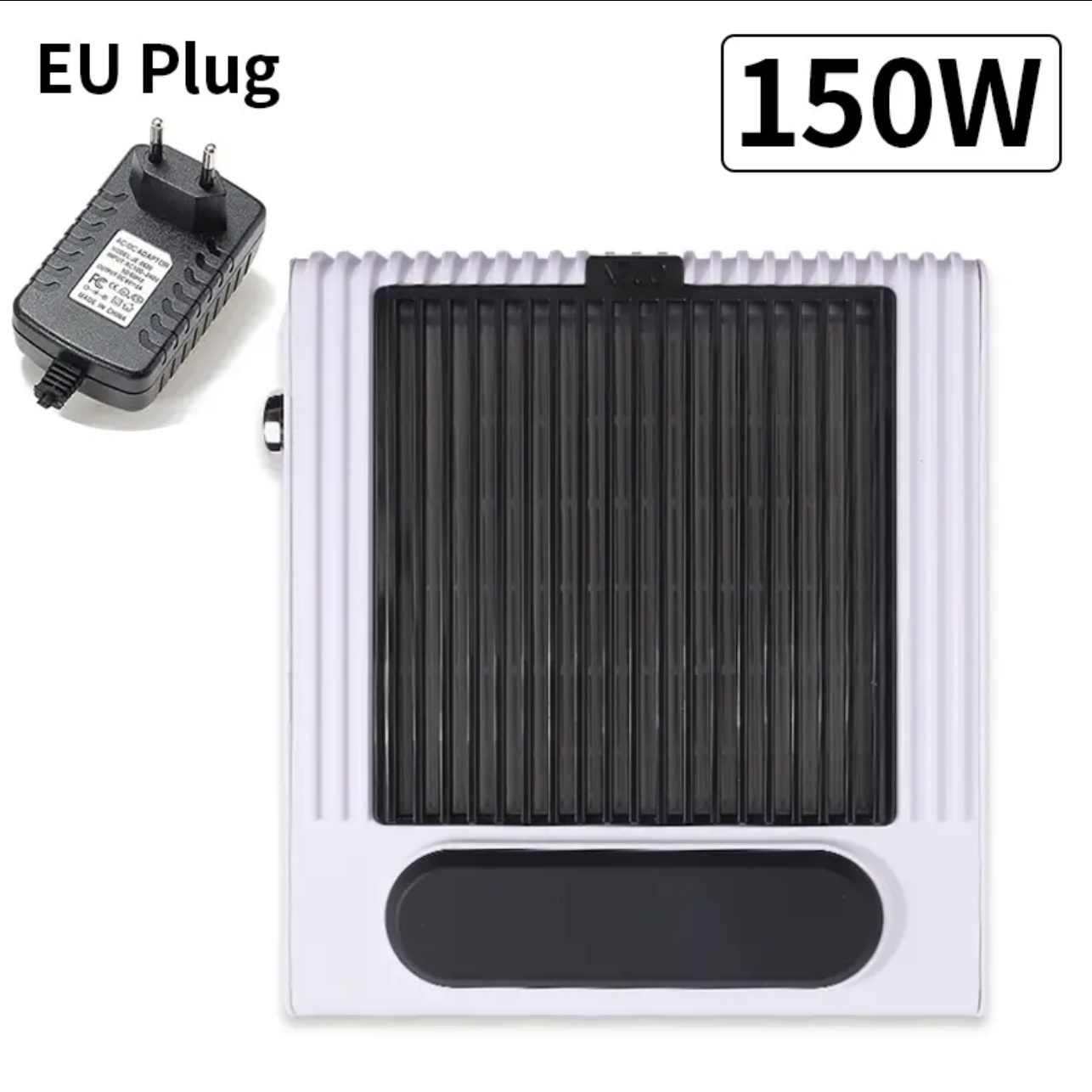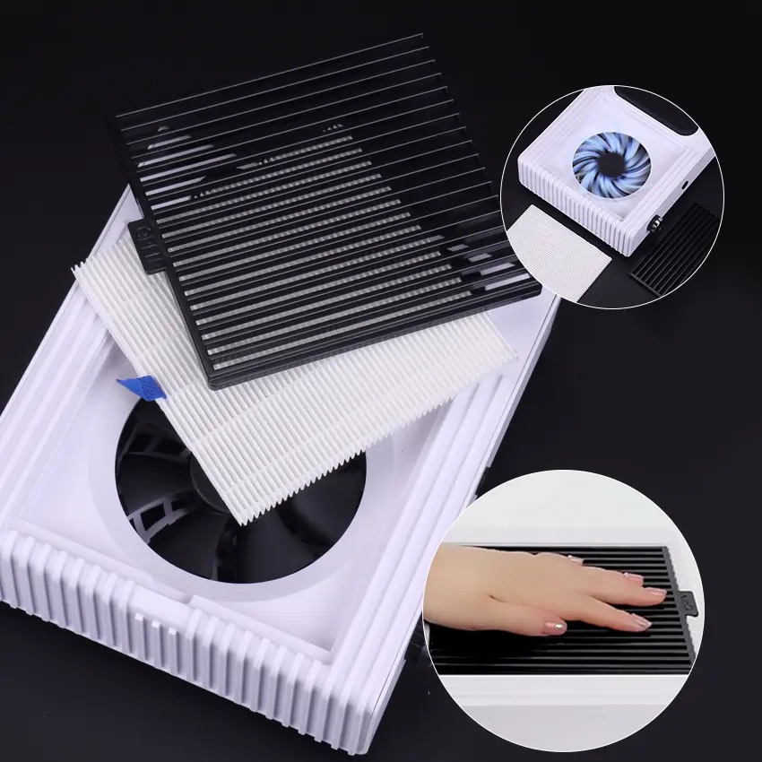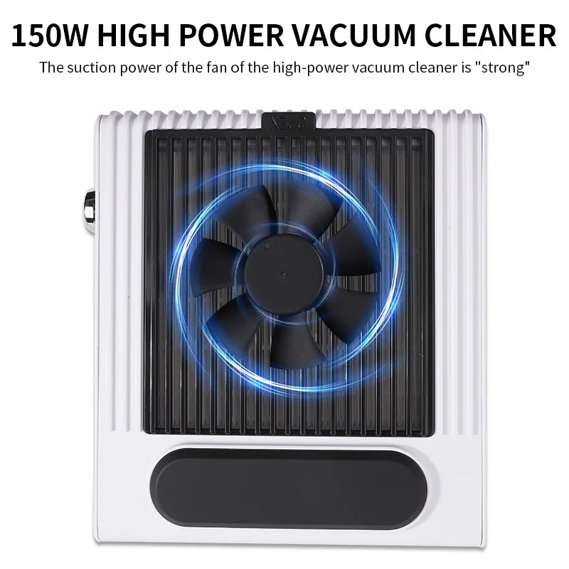Product Description: Dust collector for nails. Makes you away from dust Inhalation. This nail salon dust vacuum for nails is the best tool to collect dust while filing & curing polish nail, dip powder nail, nail art. A must-have for nail salon, allow customers to enjoy a better quality of service. Take a more professional and high-end atmosphere to nail salon. Also suitable for those who enjoy nail art DIY and doing a manicure at home, nail vent dust collector. Adjustable Suction Nail Vacuum Dust Collector This nail dust collector machine with the adjustable suction switch, it's convenient to adjust nail fan suction according to your need. Nail Duster with Reusable Nail Dust Filter Nail Vacuum Dust Collector with a reusable filter, you can easily take out the nail duster filter and conveniently clean it with a hairdryer or nail duster, no need to change it every time. PROFESSIONAL dust collector for nails salon Soft and smooth silicone hand pillow providing you a luxury manicure experience, suitable for grinding nails and foot, make your hands and foot feel comfortable. Note:The nail dust cleaner is 150W power, which is nearly maximum power in the marketplace. A powerful motor ensures powerful suction. So the noise maybe a little loud, but it helps you and your customer being away from dust Inhalation.