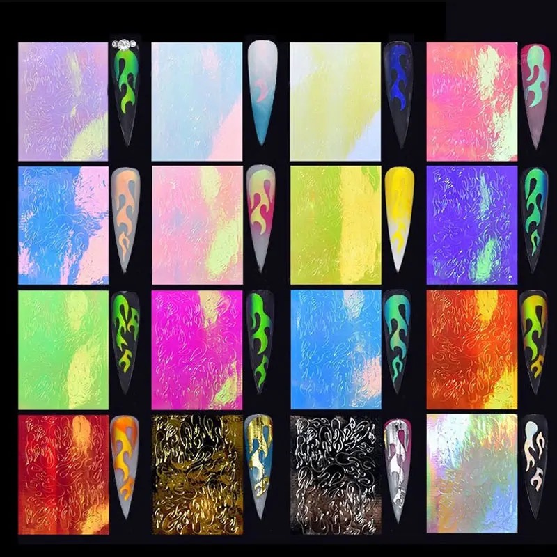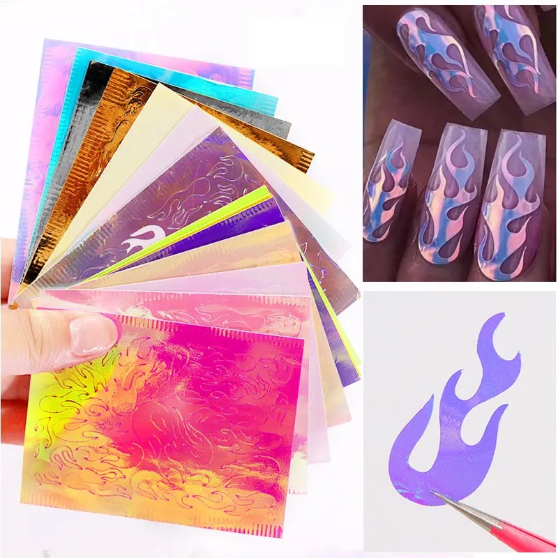 16pcs set holographic flame sticker