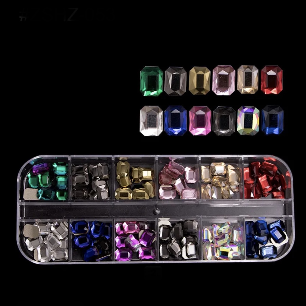 Multi shape colored rhinestone in box (CHB02339)