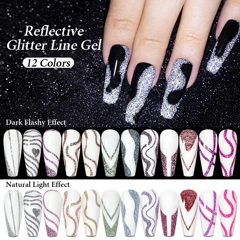 Tags: Glitter set Silver Reflective Glitter Pull Liner Gel Nail Polish Super Bright Sparkling Painting Lines Nail Art UV Gel Varnish
