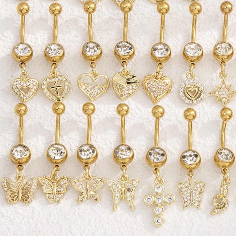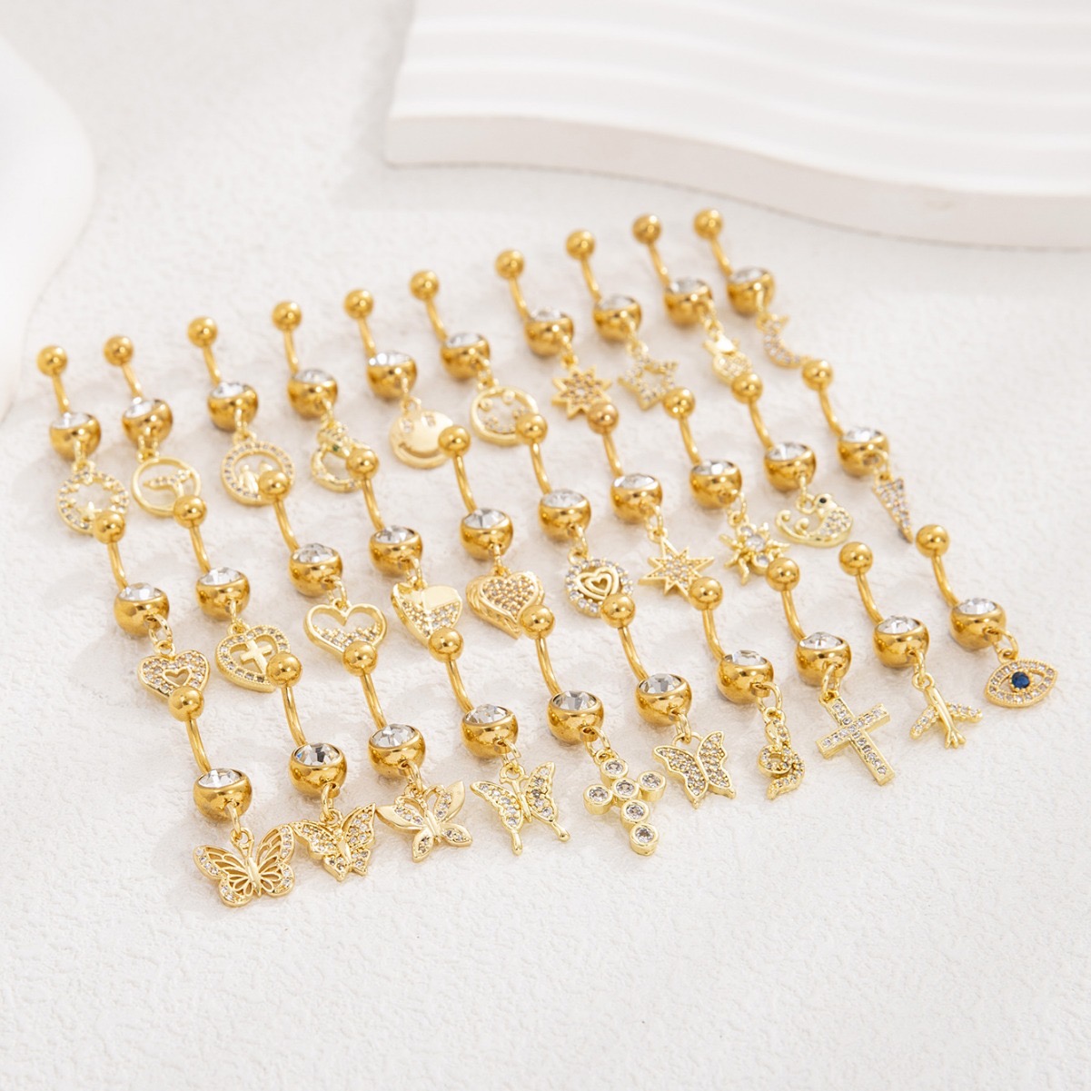 6pcs Rose gold Set of navel piercing ring pendant (CHB00930)