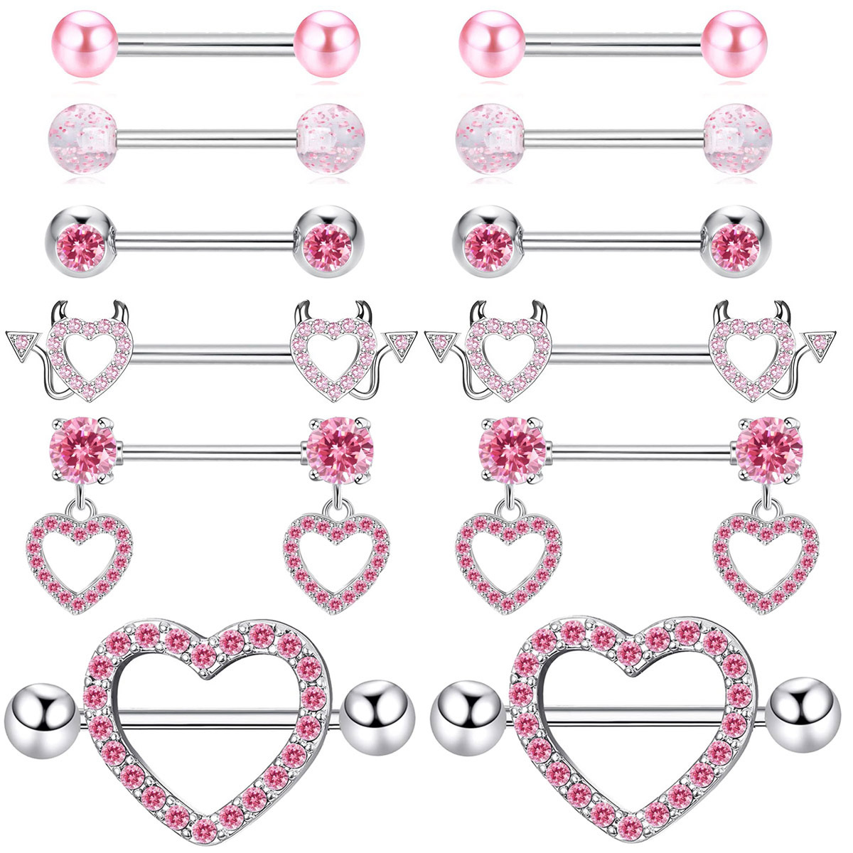 6pcs Rose gold Set of navel piercing ring pendant (CHB00930)