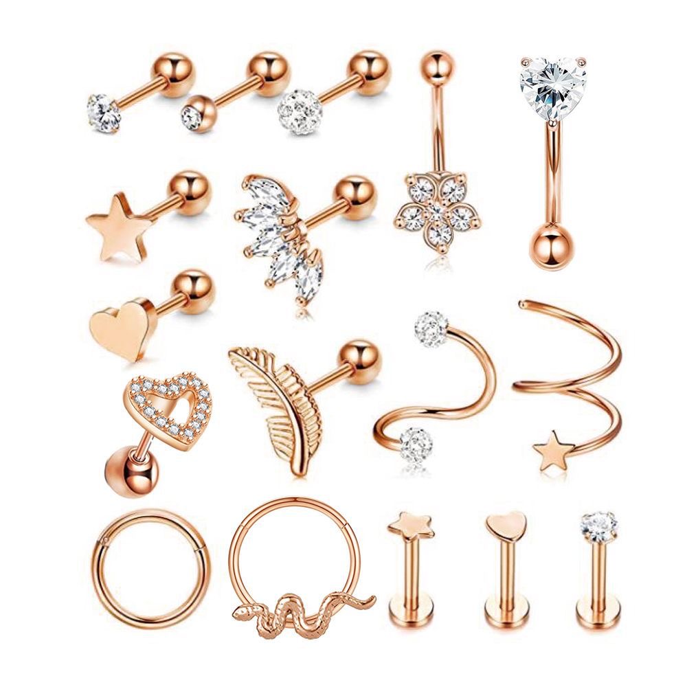 6pcs Rose gold Set of navel piercing ring pendant (CHB00930)