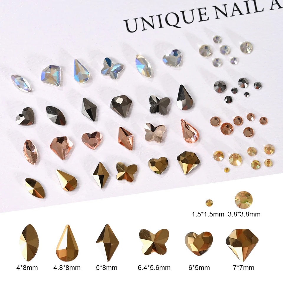 Champagne gold mix sizes and shapes rhinestone (CHB02733)