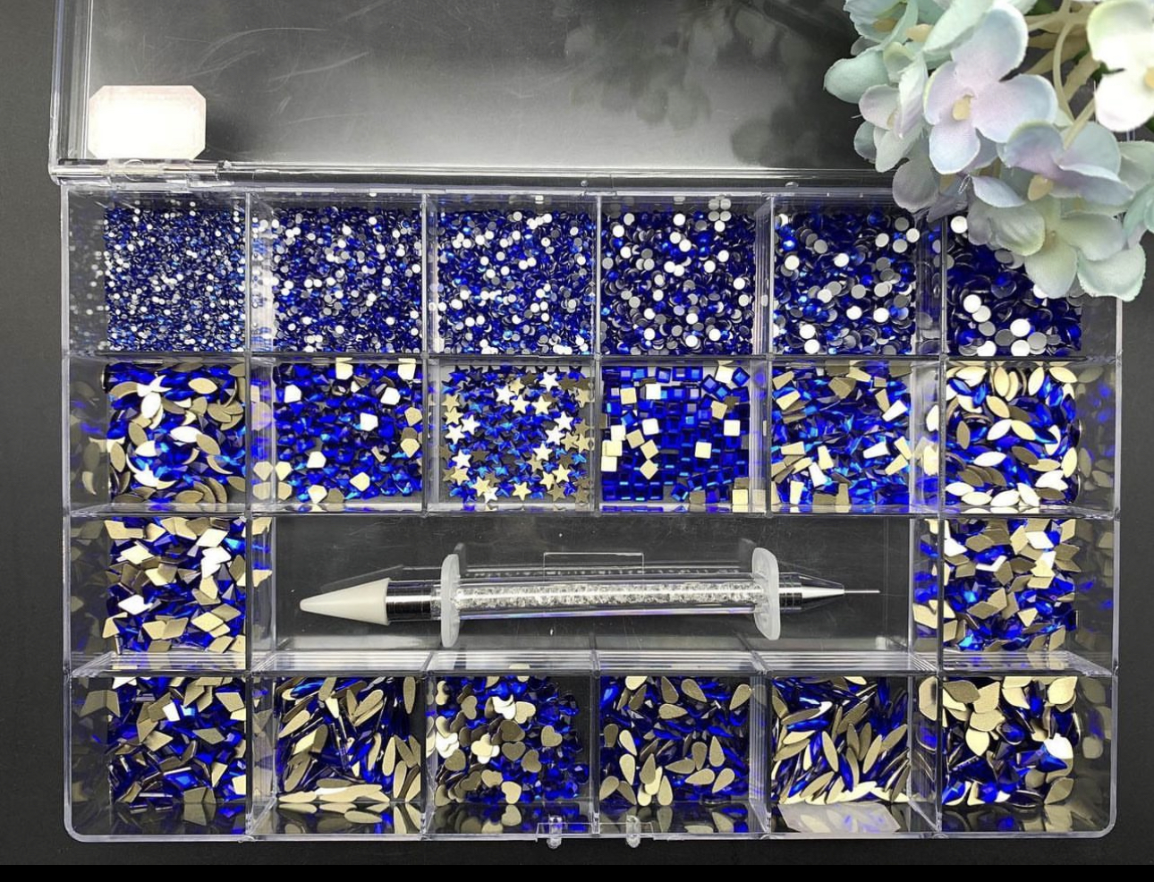 Blue sapphire mix sizes and shapes rhinestone box (CHB01065)