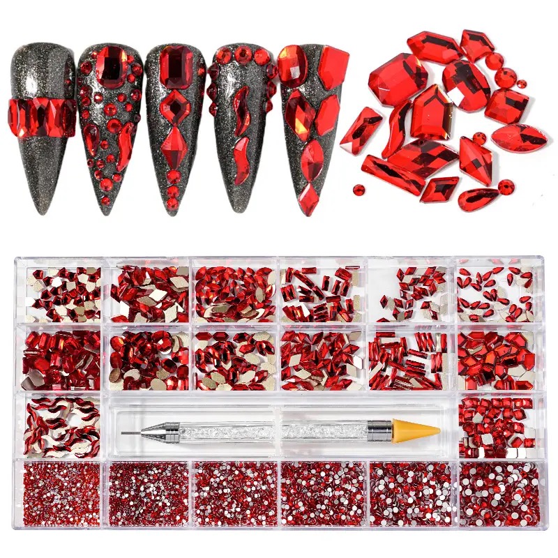 Red ruby Mix Shape And Sizes Rhinestones Set (CHB01169)