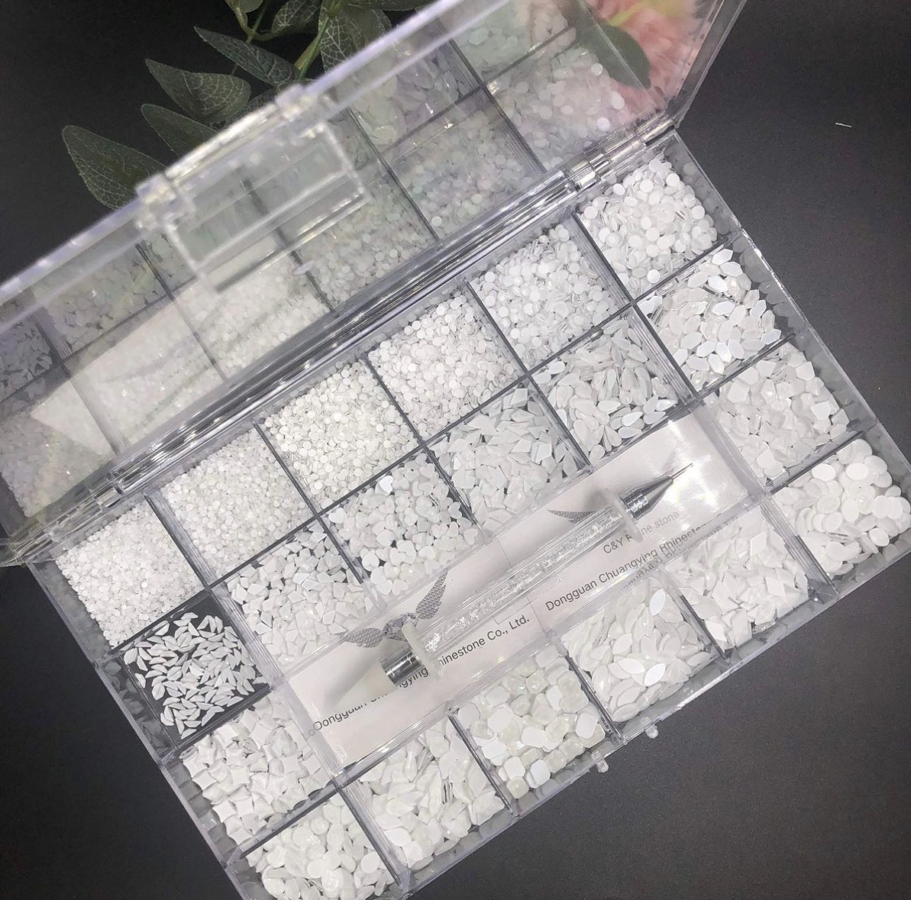 Clear crystal mix sizes and shapes rhinestone box (CHB01063)