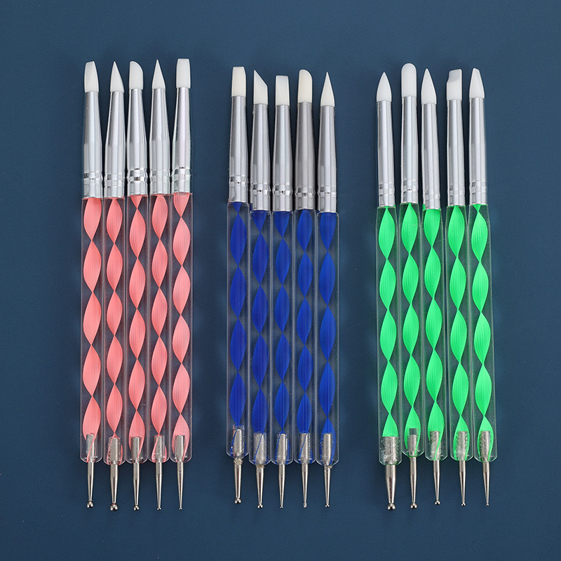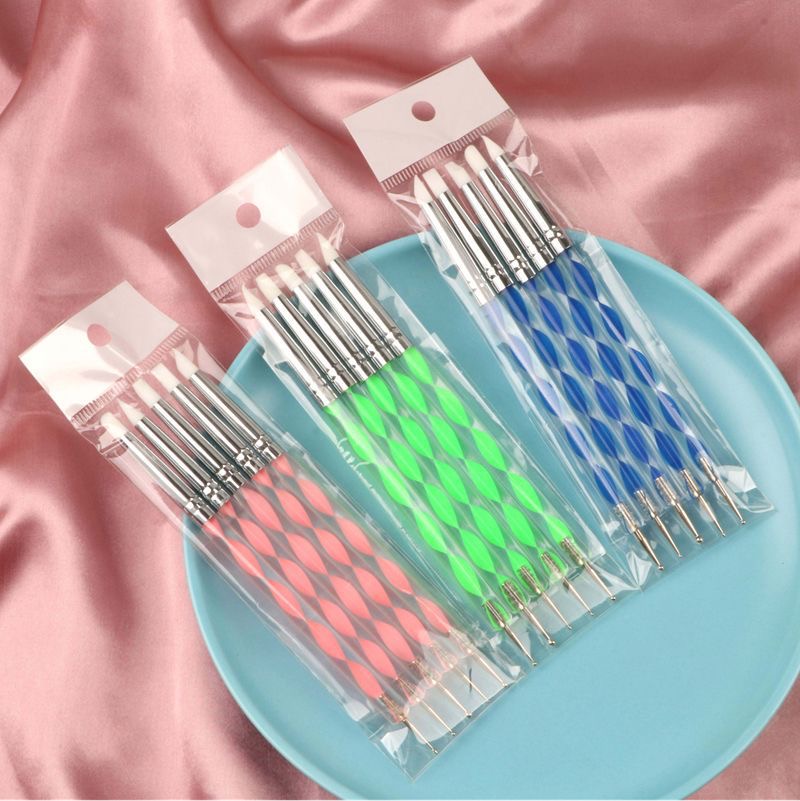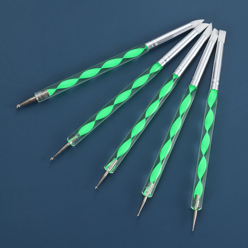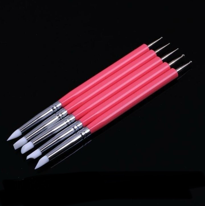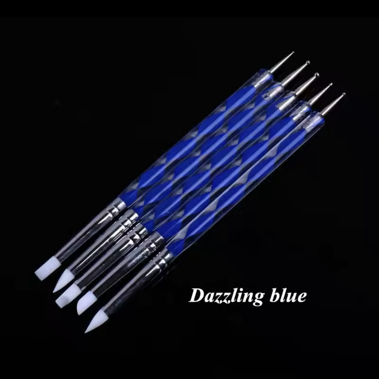 5pcs Dual purpose dotting & silicon nail art brush (CHB02883)
