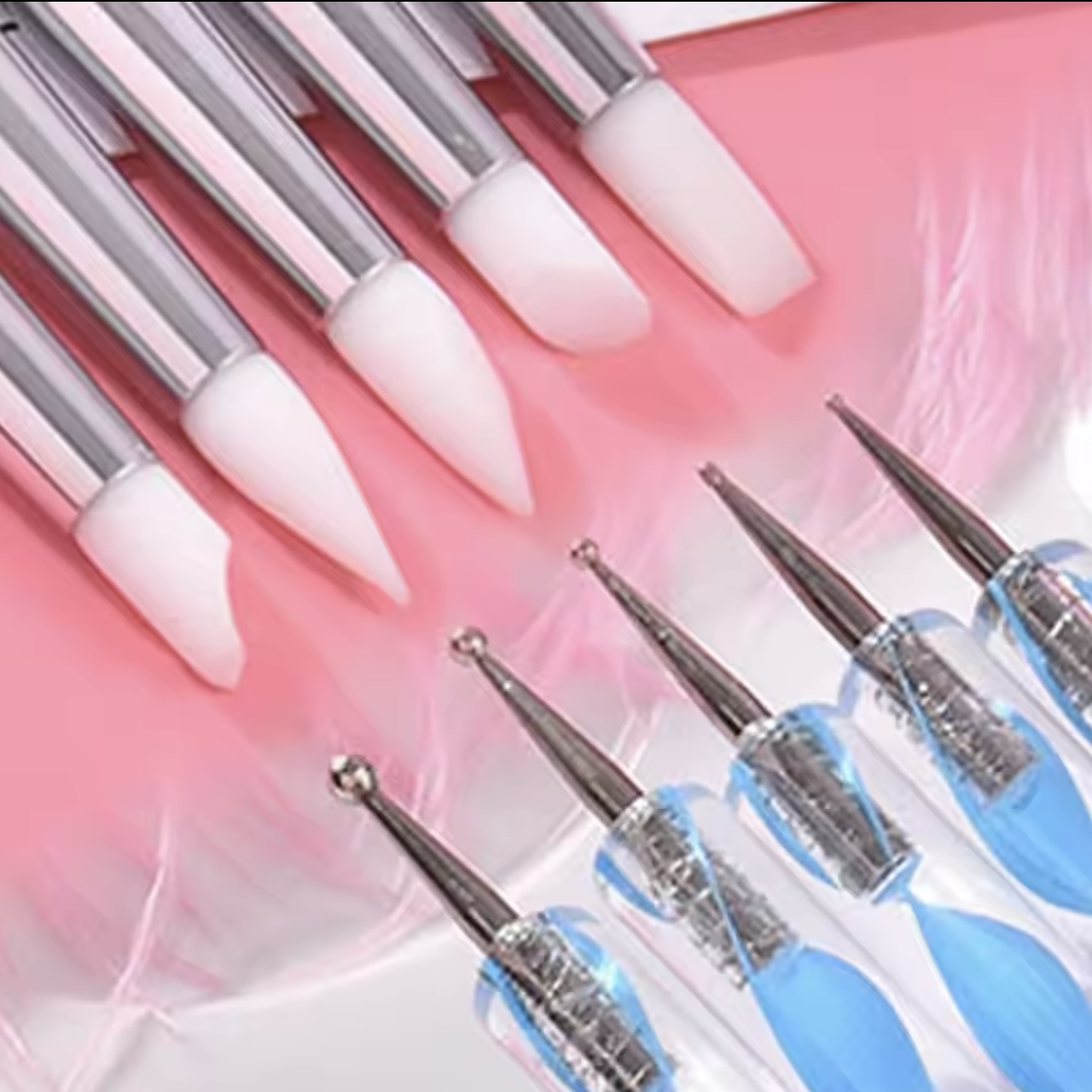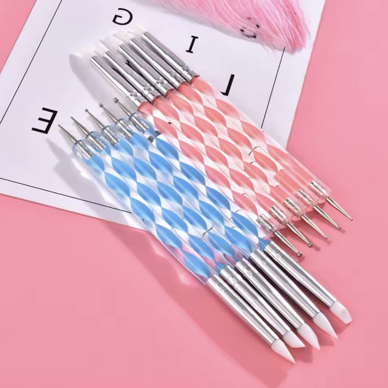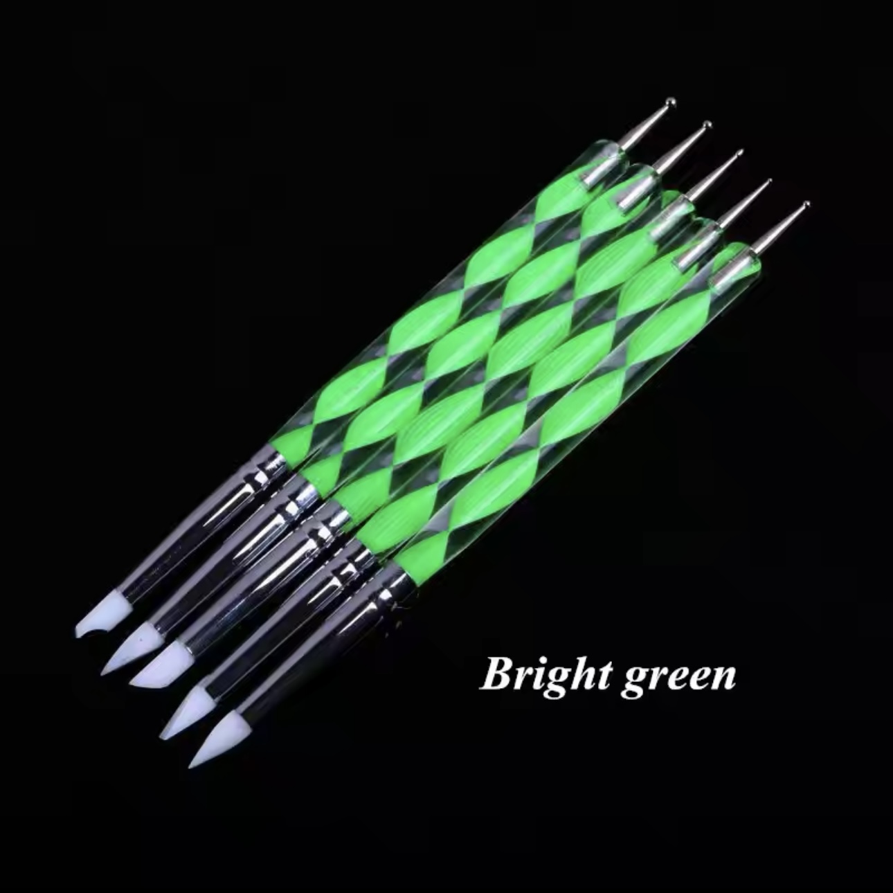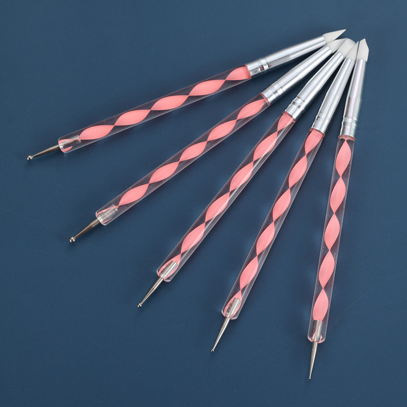 5pcs Dual purpose dotting & silicon nail art brush (CHB02883)