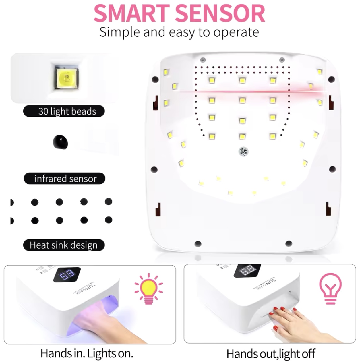 66watts pink LED rechargeable nail lamp (CHB01783)