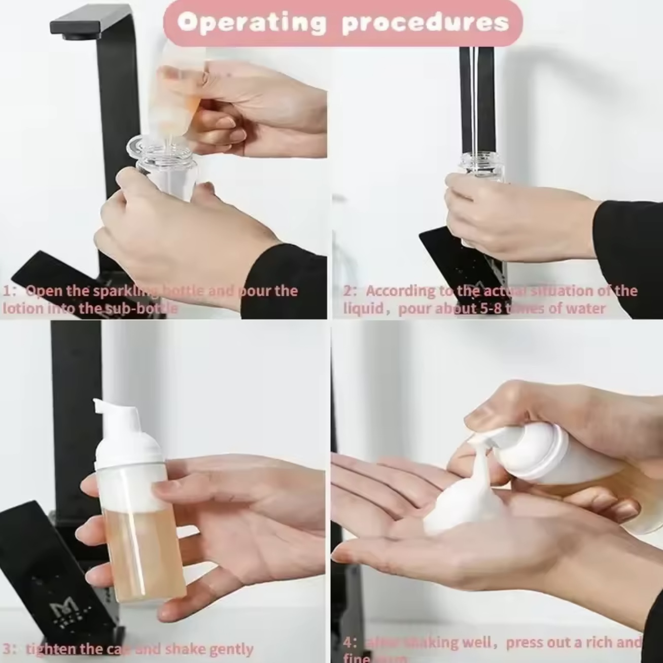 Instructions for use: After pouring the lotion and water into the bottle, please shake the bottle to make it foam.